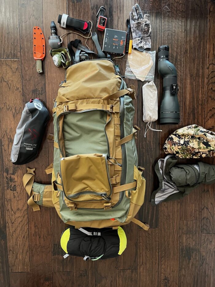 For my September hunt setups, I rarely go out with anything less than a 65-liter pack unless I am just scouting before the season, even then, I tend to lean on the safer side and pack a few extra provisions just in case things go south. I usually have a Basecamp set up, and come back to camp either every day or every three days, depending on the action.