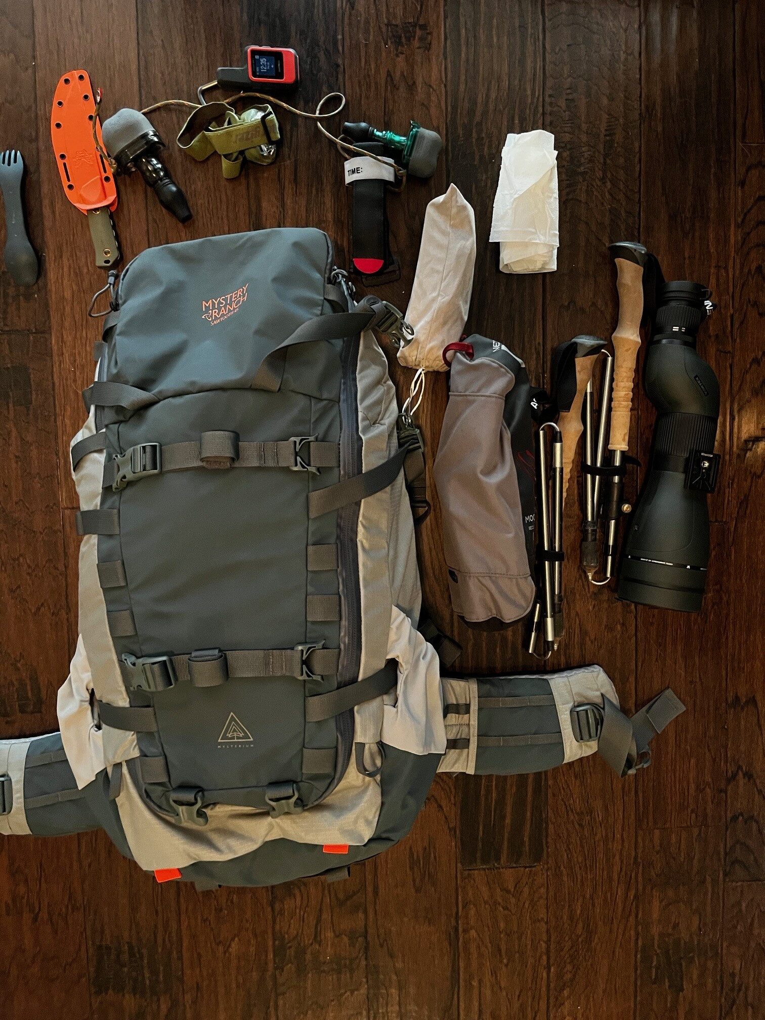 For the SAWTOOTH 45, my loadout is lighter and easier to manage. For a quick 1–2 day hunt, I bring first aid, hygiene kit, hunting essentials, headlamps, emergency gear, power banks, a couple of days of food (just in case), Jetboil, chair, hammock, kill kit, rain gear, and extra socks. The pack doesn’t carry as much as the larger models, but you still get multiple options for organizing your gear, and the comfort that comes with the MYSTERIUM series.